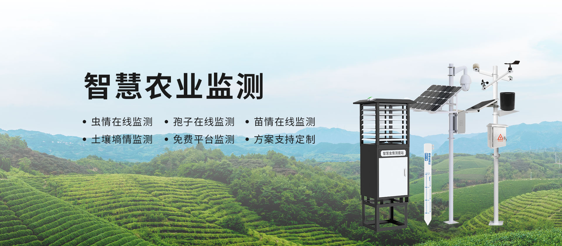 觀測與農業相關的土壤墑情、光照強度、降雨量、太陽總輻射、風速風向、負氧離子等氣象環境要素,及O2、CO2、NO2等各種氣體濃度,為氣象科研、農業生產等提供精確的數據支持。